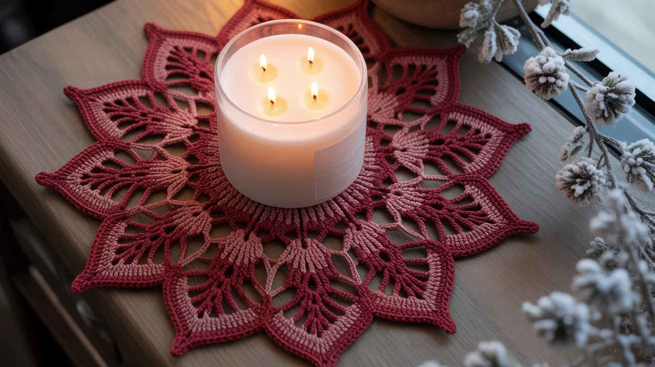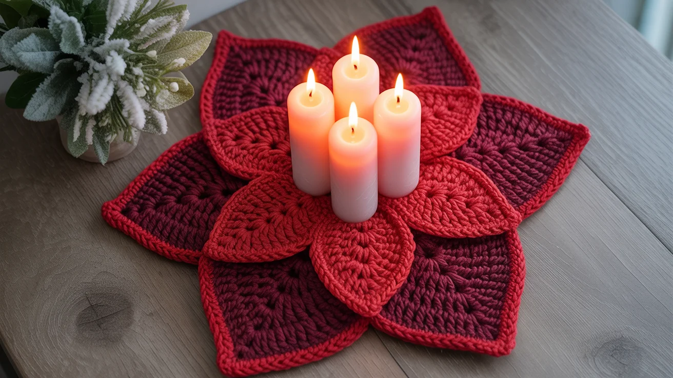 Crochet Pattern Table – Christmas Poinsettia Candle Coaster