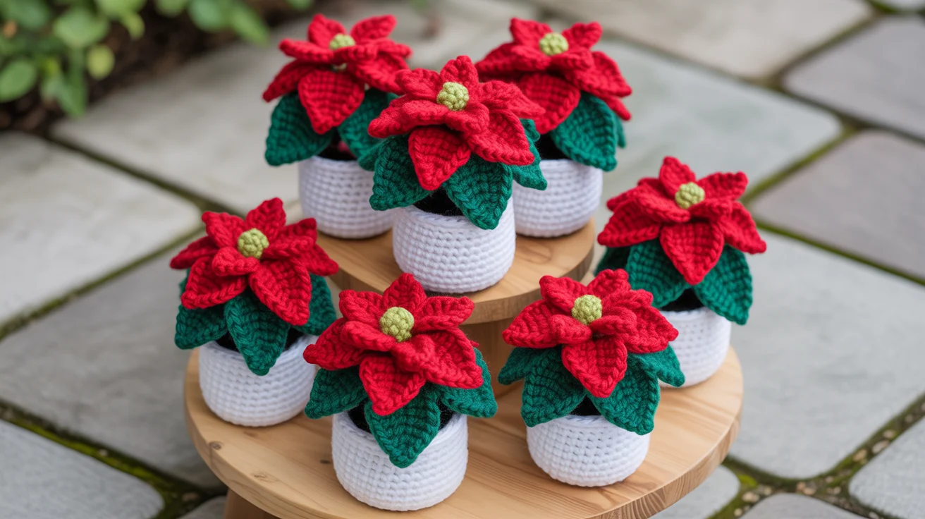 “description”: “A complete guide to 11 beautiful crochet poinsettia patterns for Christmas home décor. Includes instructions, tables, FAQs, and tips.”,
