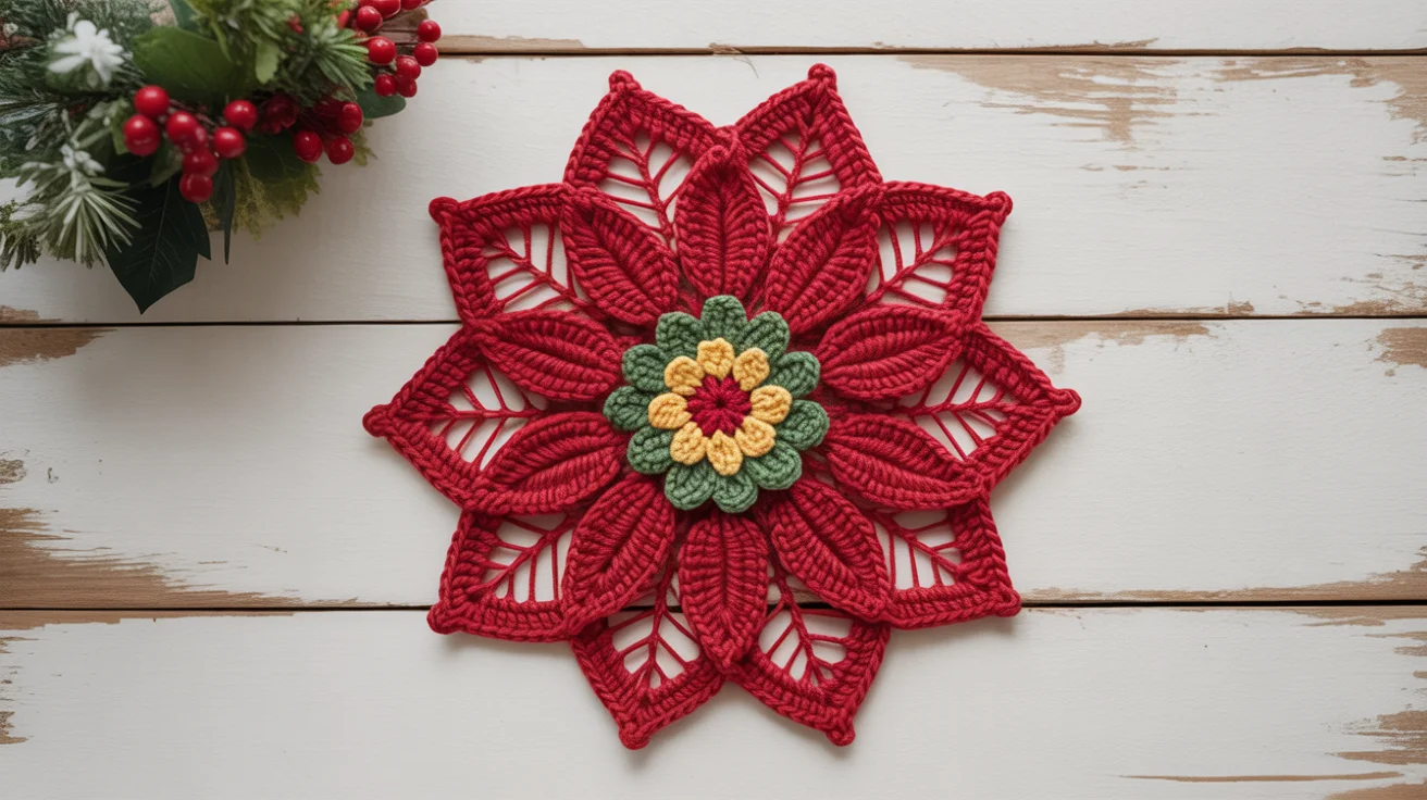 If you love decorating your home with meaningful handmade pieces, these Crochet Poinsettia Home Décor Free Patterns are going to be your favorite holiday project this season. Poinsettias are known as the iconic Christmas bloom, and turning them into crochet décor brings warmth, tradition, and artistry into your home. Whether you’re adding festive touches to your living room, preparing handmade gifts, or decorating your holiday table, these patterns give you plenty of creative possibilities. Each design uses beginner-friendly stitches, stunning textures, and timeless Christmas colors. From wreaths to coasters to ornaments — you’ll find patterns that match your décor style while giving you a chance to express your creativity. Explore all 11 ideas below and pick the perfect poinsettia project for your next cozy crochet session.